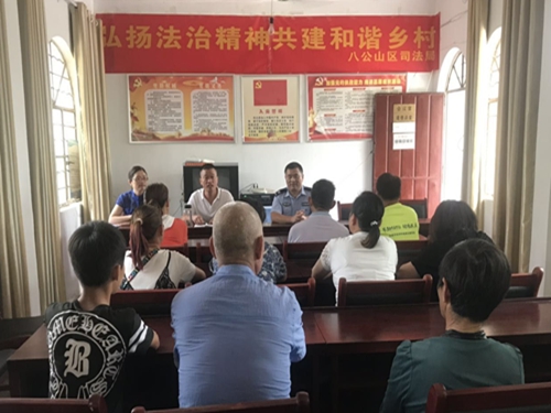 为弘扬法治精神,深化农村法治宣传教育,增强村民法律素质和法治观念,为景区发展营造和谐稳定的法治环境,6月27日上午,区司法局在八公山镇妙山村开展“弘扬宪法精神,共建和谐乡村”主题法治宣传教育活动。妙山村支两委成员及部分村民代表参加活动。