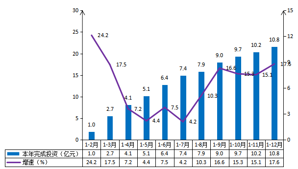 从产业投资看,第一产业投资0.3亿元,同比增长21.5%;第二产业投资5亿元,同比增长3.5%;第三产业投资5.5亿元,同比增长33.6%。从入库项目看,全年新增纳统项目38个项目,同比增长9%;计划总投资28.3亿元,同比增长34%。其中,亿元以上项目10个,与上年相比增加4个,计划总投资22.9亿元,当年累计上报5.5亿元。