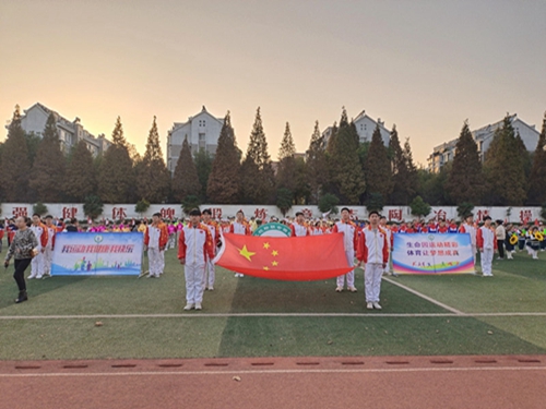 当天上午8:30,4名学生庄严地托举着鲜红的国旗,迈着矫健的步伐,气宇轩昂地步入会场。在五星红旗的引领下,会徽方阵、鼓号方阵、红旗方阵及运动员代表队依次进入会场。区教体局党委书记、局长黄磊为运动会致开幕词,副区长管迎悦宣布运动会正式开幕。运动场上鼓号齐鸣、掌声洋溢。
