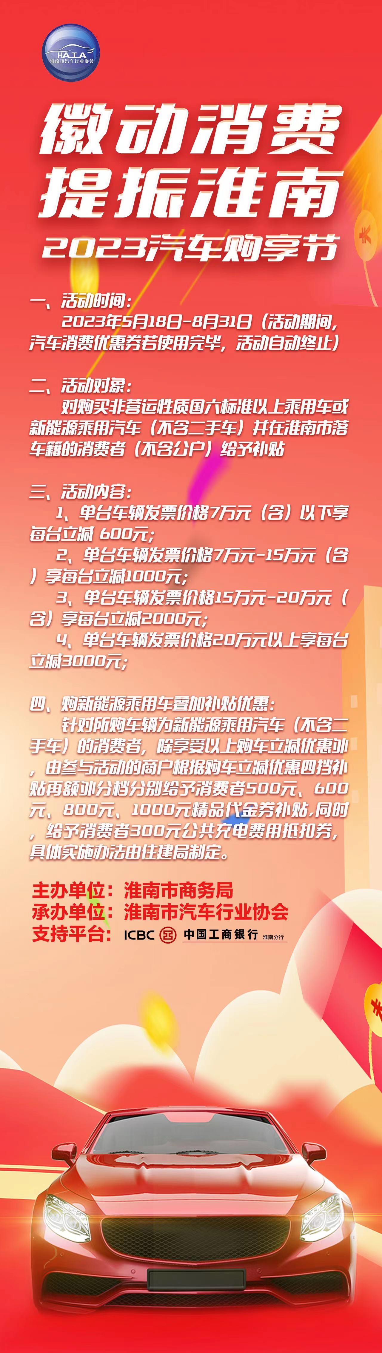 【本级政策】“2023徽动消费提振淮南”——汽车购享节来啦!