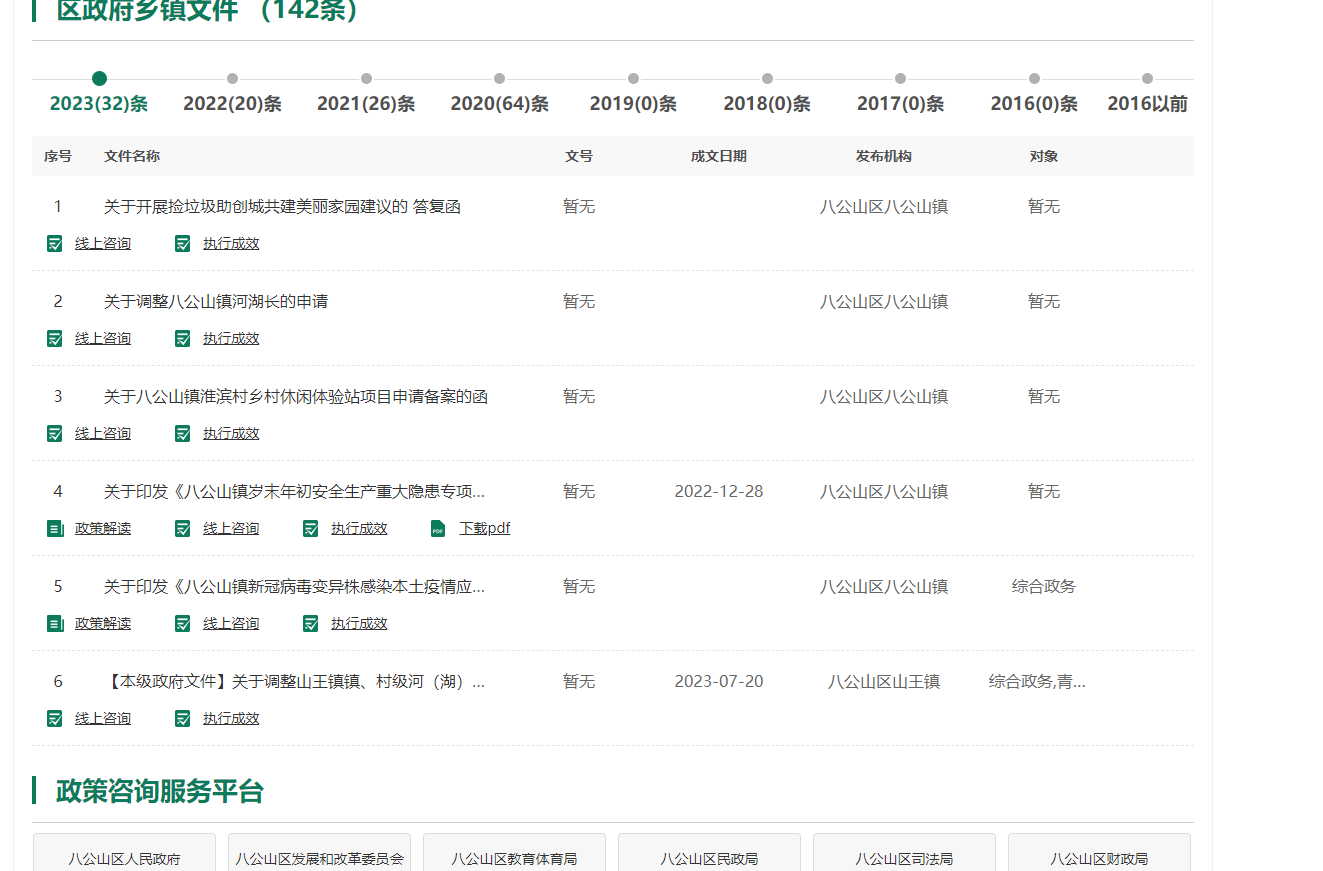 根据市政务公开办公室要求,对规范性文件字体格式重新进行了设置。完善解读、重大决策预公开、规范性文件与政策问答之间的关联。对区规范性文件库进行改版,包含区其他文件、部门文件、乡镇文件等,群众可点击政策咨询服务平台咨询相关政策。