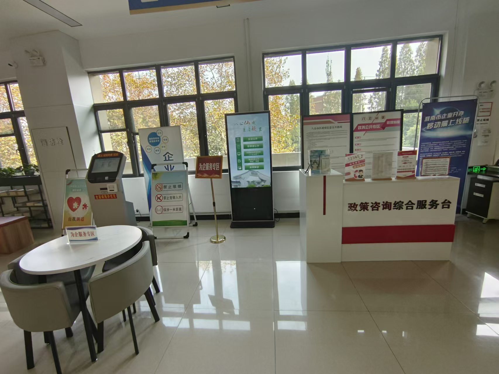 八公山区政务公开专区建立在区数据资源管理局2楼,专区设立政策咨询综合服务台、自助查询机、打印机等设备。同时设置了为企服务专区,为企业提供涉企咨询等服务。群众可在咨询服务台咨询政策制定部门相关问题,或根据政策咨询电话联系负责人了解政策。