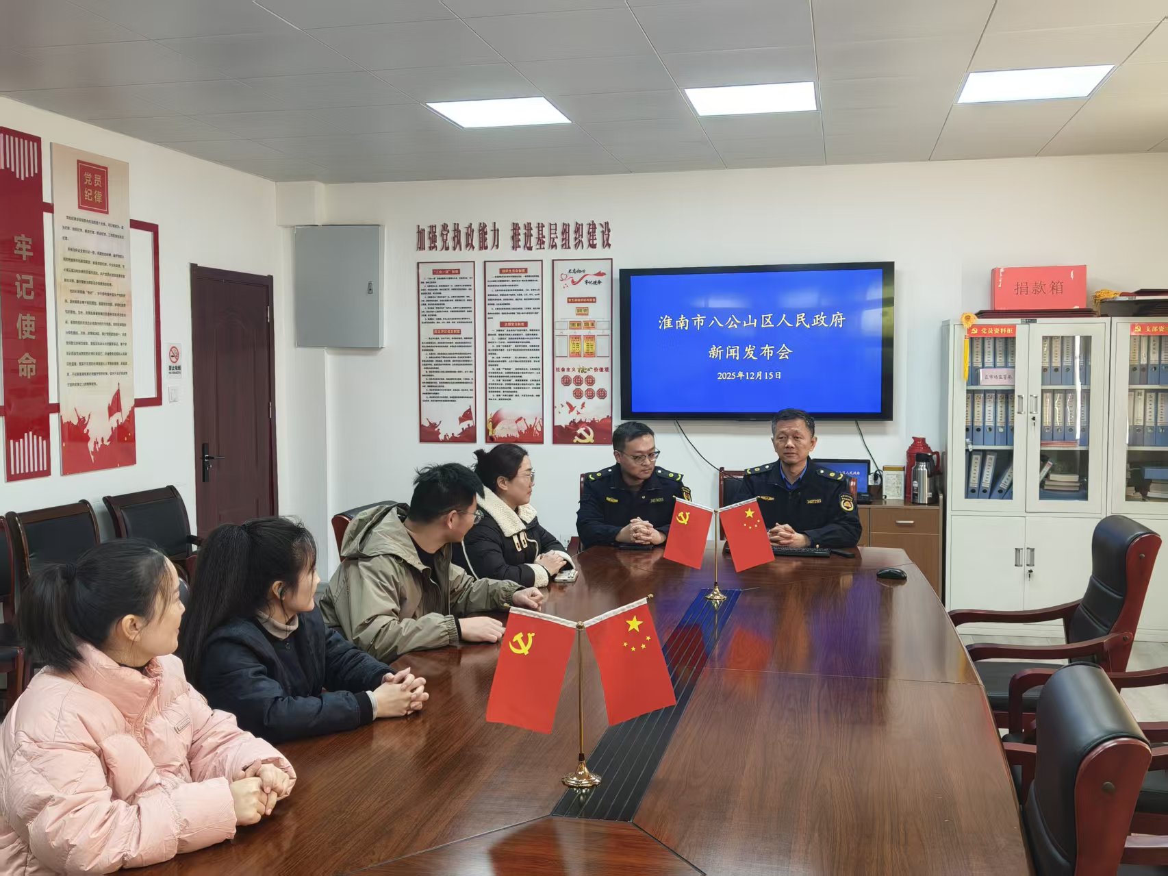 12月10日上午,八公山区城管局城市管理工作总结新闻发布会在区政府三楼会议室举行,区城管局新闻发言人、副局长柴化珑主持发布会,区城管局办公室副主任王卿臣参加发布会。