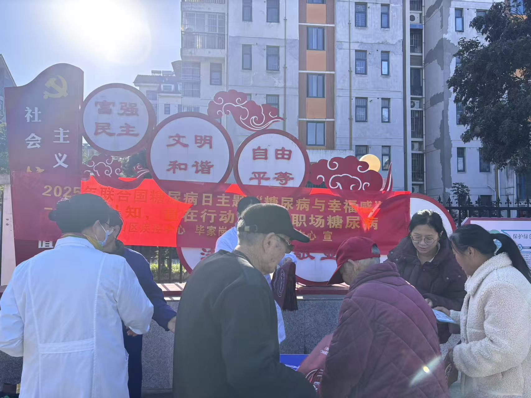 2025年11月14日是第19个联合国糖尿病日,为提高社会各界对糖尿病防治工作重要性的认识,保护人民群众身体健康,普及糖尿病防治知识,八公山区疾控中心、毕家岗卫生服务中心在新建小区开展糖尿病日宣传活动。