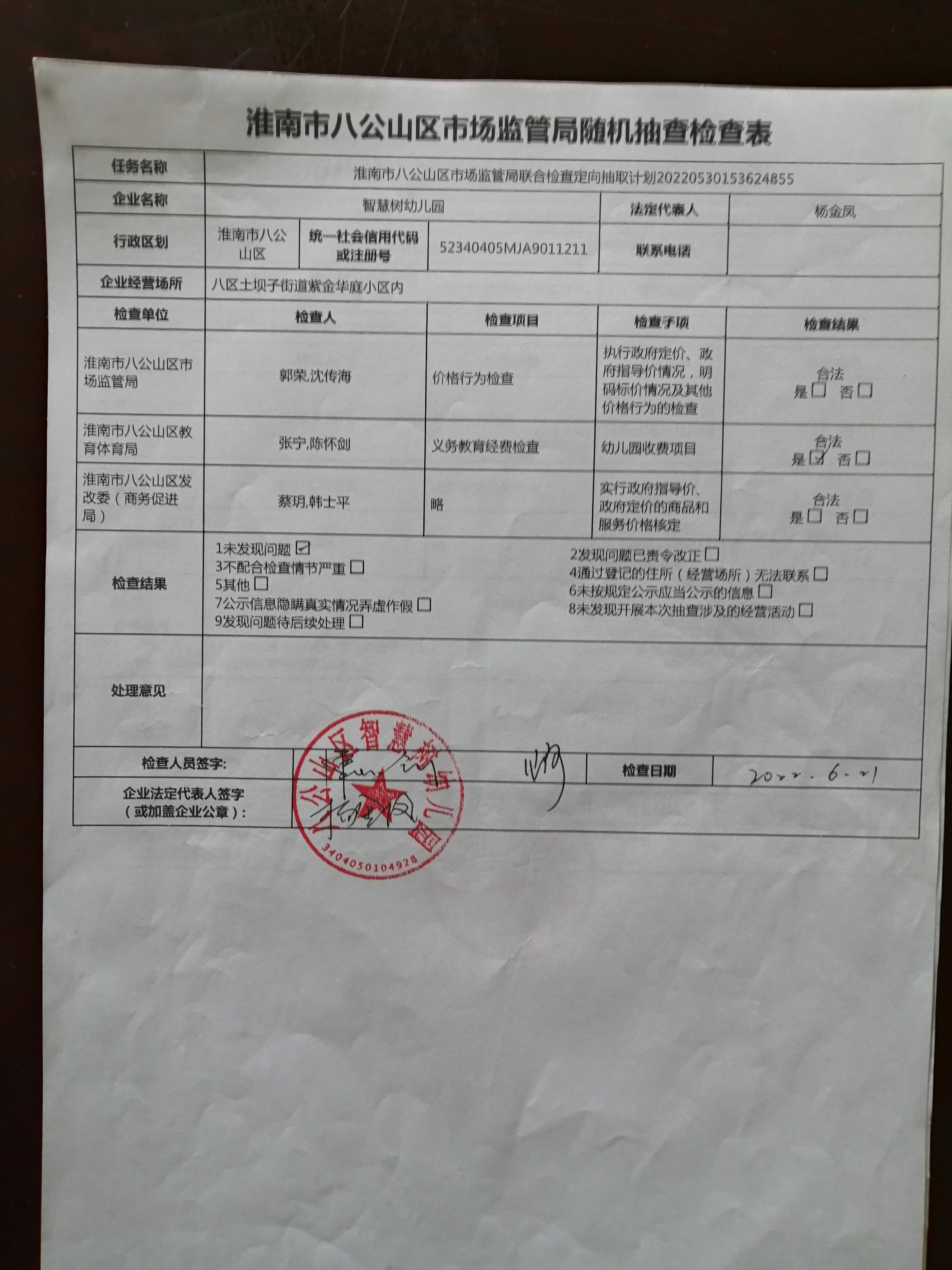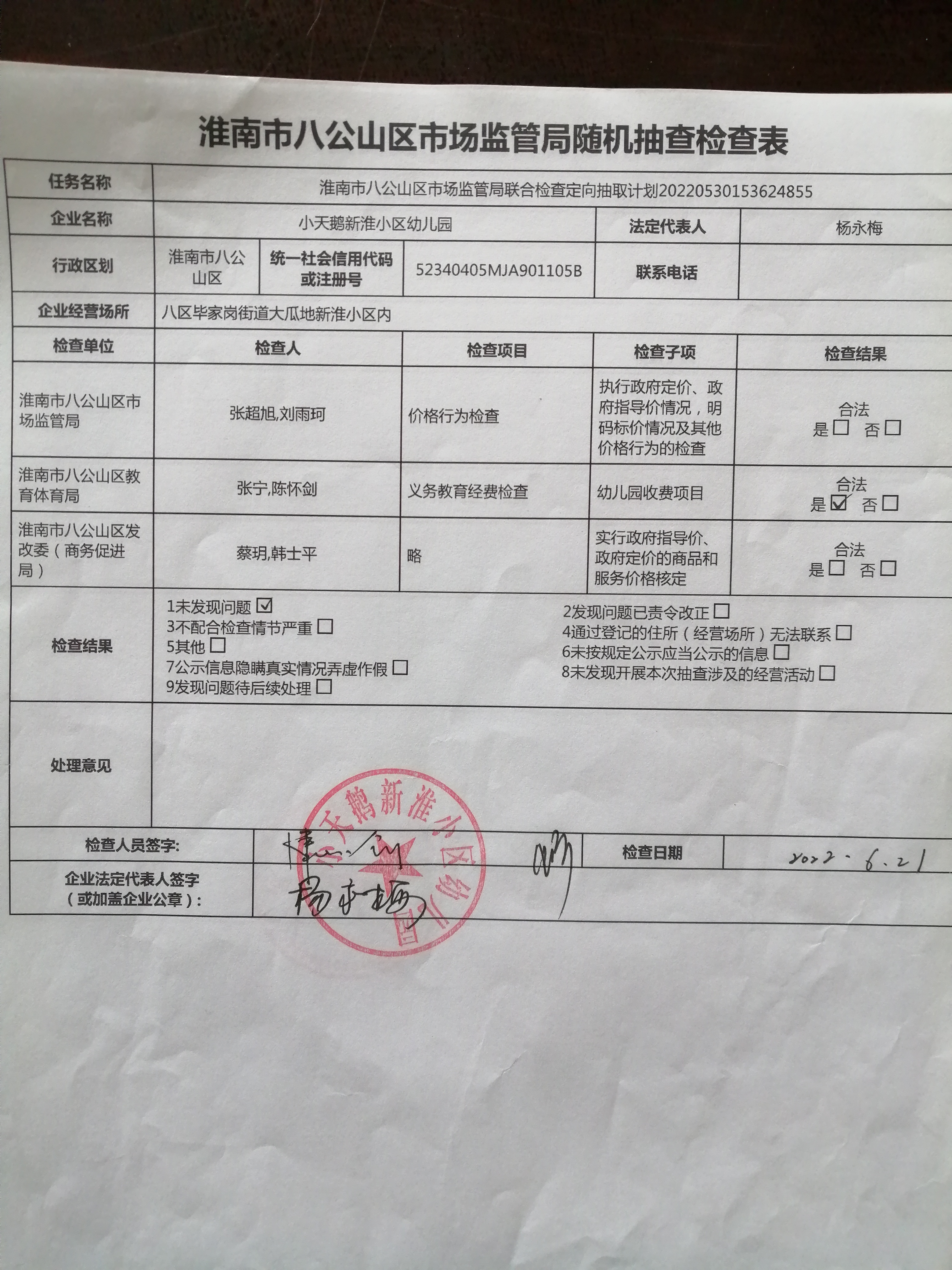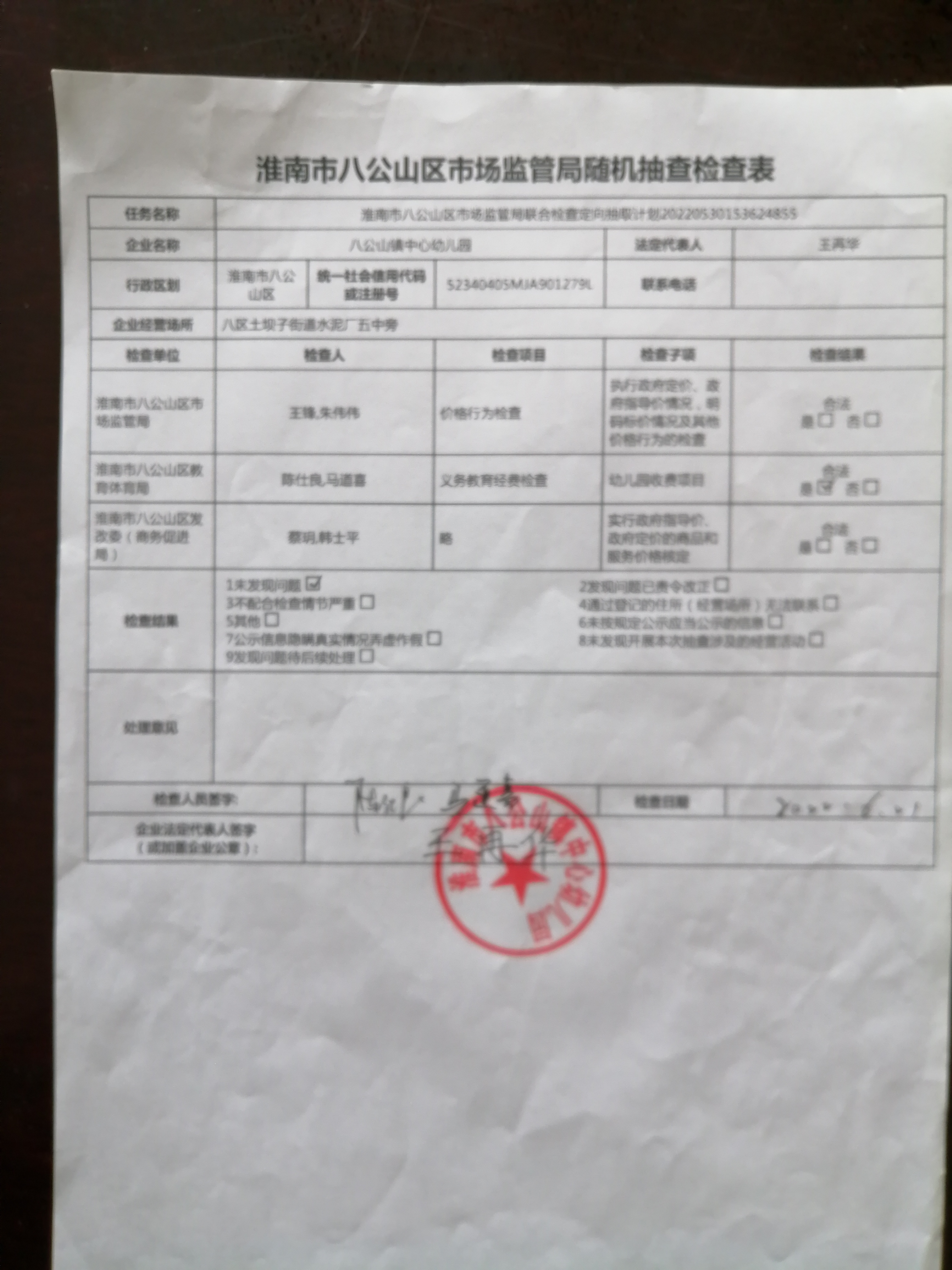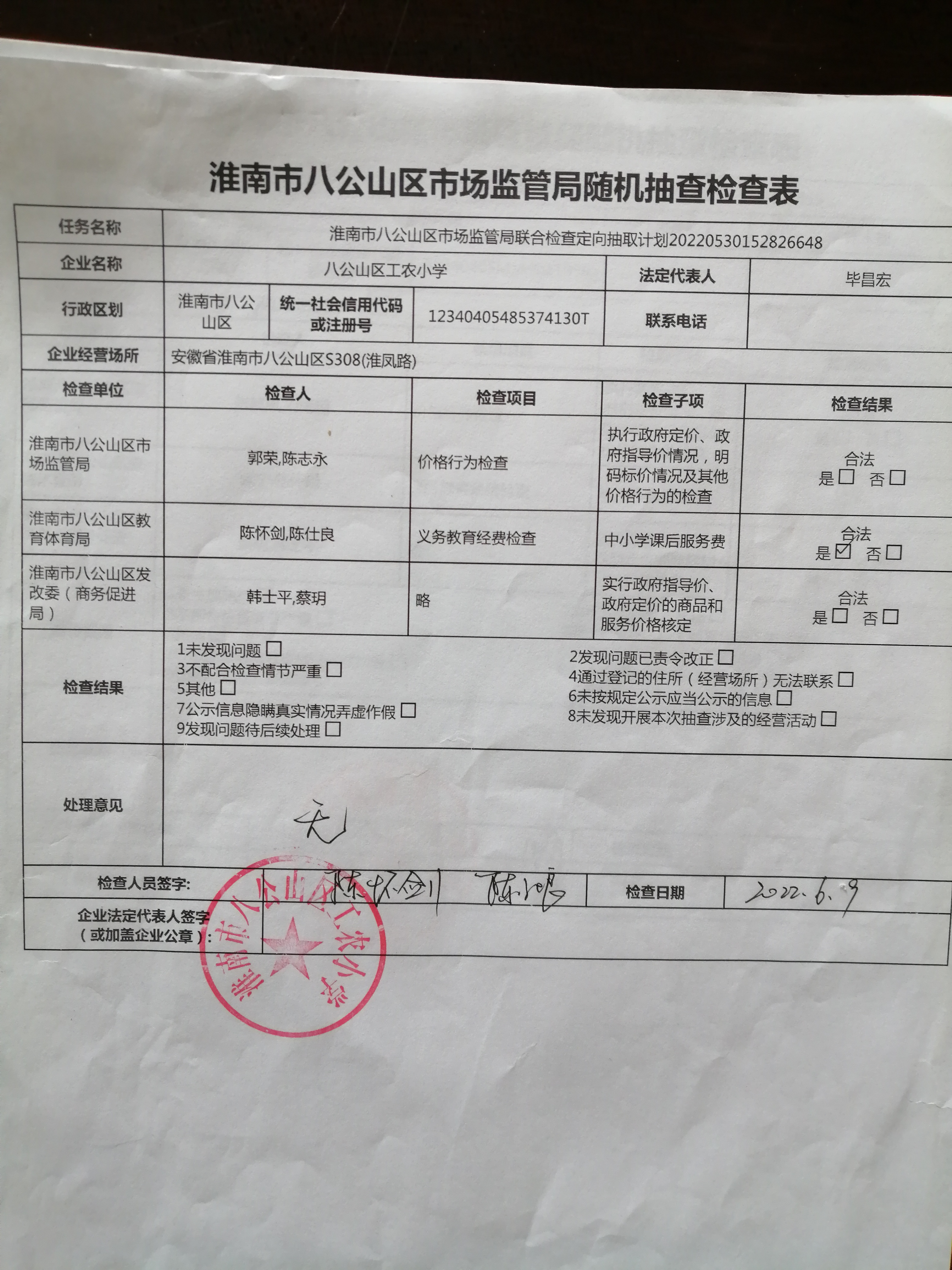 八公山区教体局2022年度抽查任务抽查结果