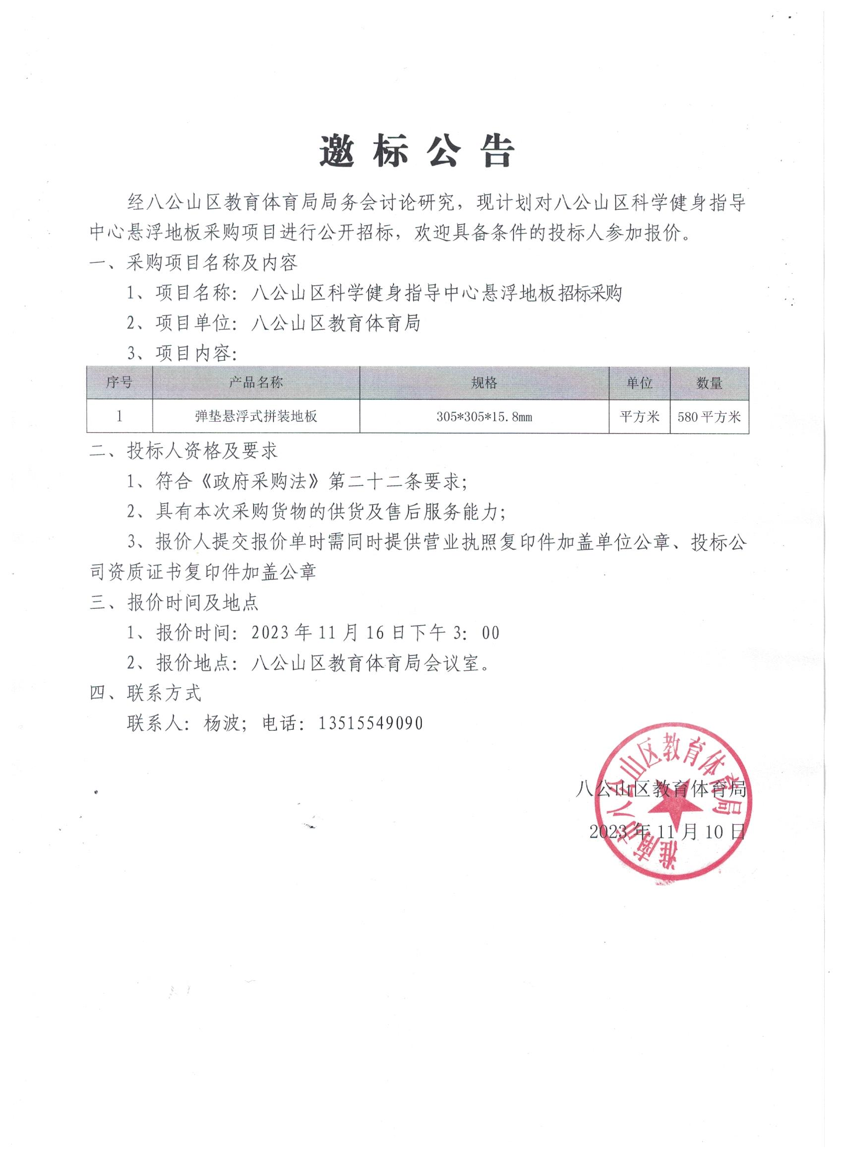 八公山区科学健身指导中心悬浮地板招标采购邀标公告