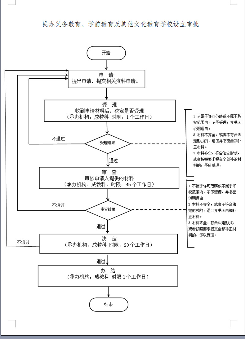 行政许可:2023年民办义务教育、学前教育及其他文化教育学校设立审批流程图