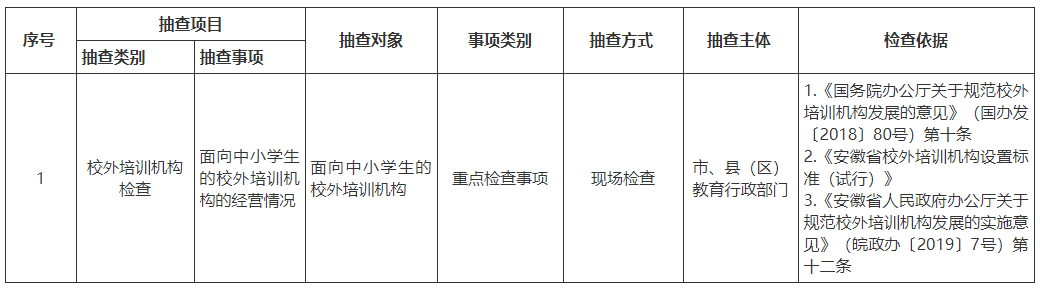 【抽查清单】淮南市八公山区教育体育局2024年上半年随机抽查事项清单