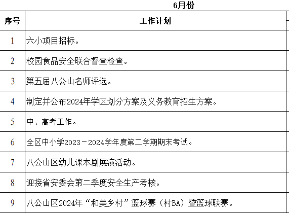 八公山区教体局2024年6月份重点工作