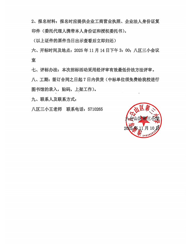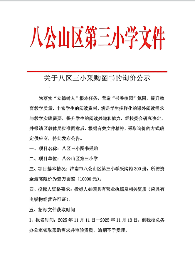 关于八区三小采购图书的询价公示