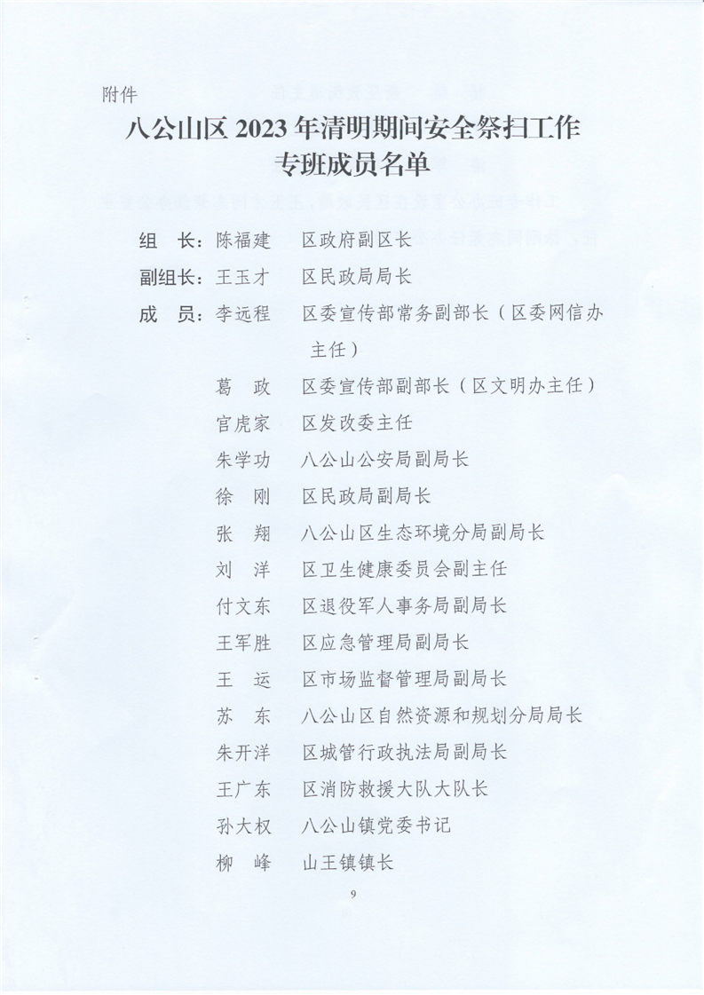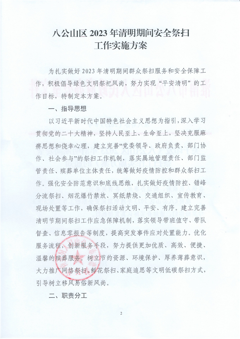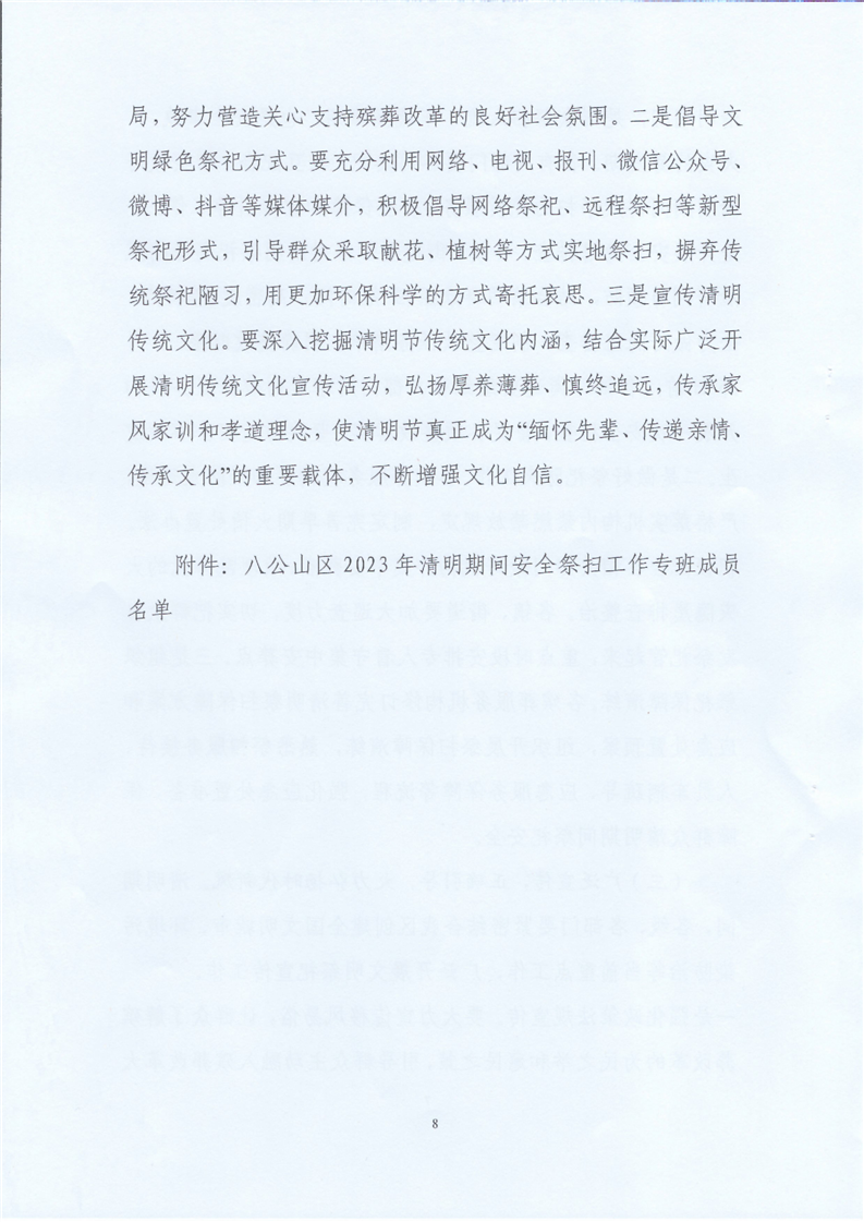 关于印发《八公山区2023年清明期间安全祭扫工作实施方案》的通知