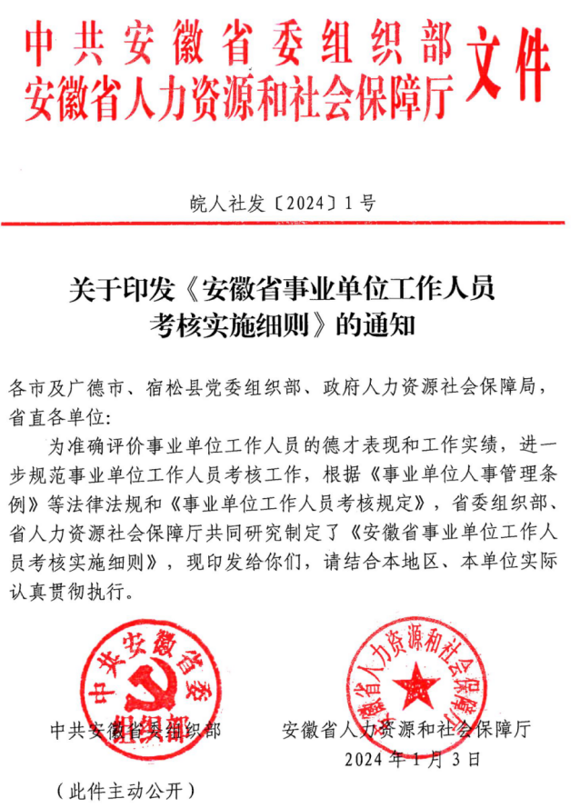 附件:1.《安徽省事业单位工作人员考核实施细则》