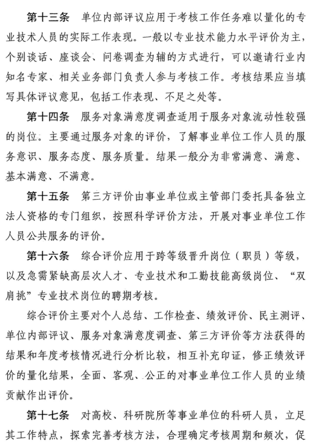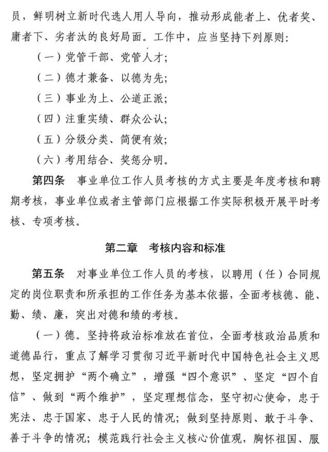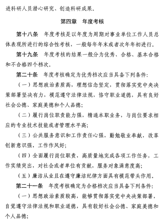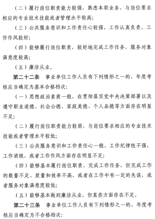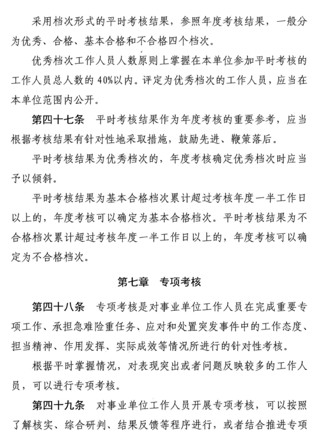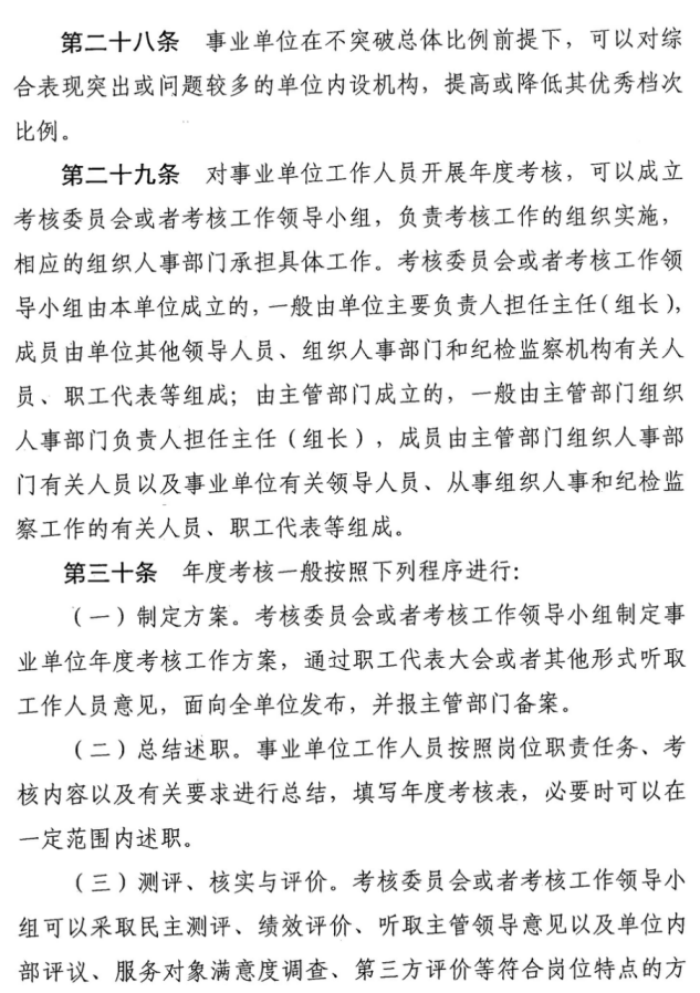 事业单位工作人员年度考核内容、方法、档次、程序和结果运用等按照《考核细则》有关要求执行。