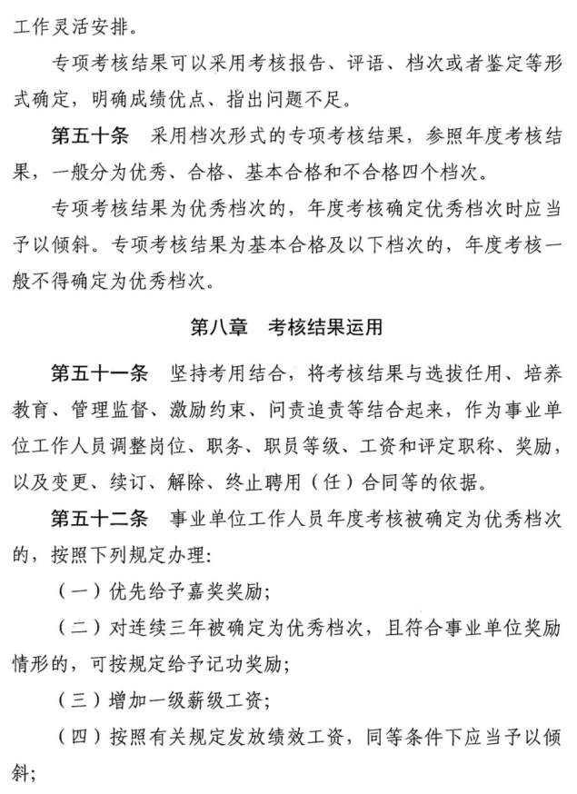 (三)年度考核结果运用按照《事业单位工作人员奖励规定》(人社部规〔2018〕4号)和《考核细则》等规定执行。