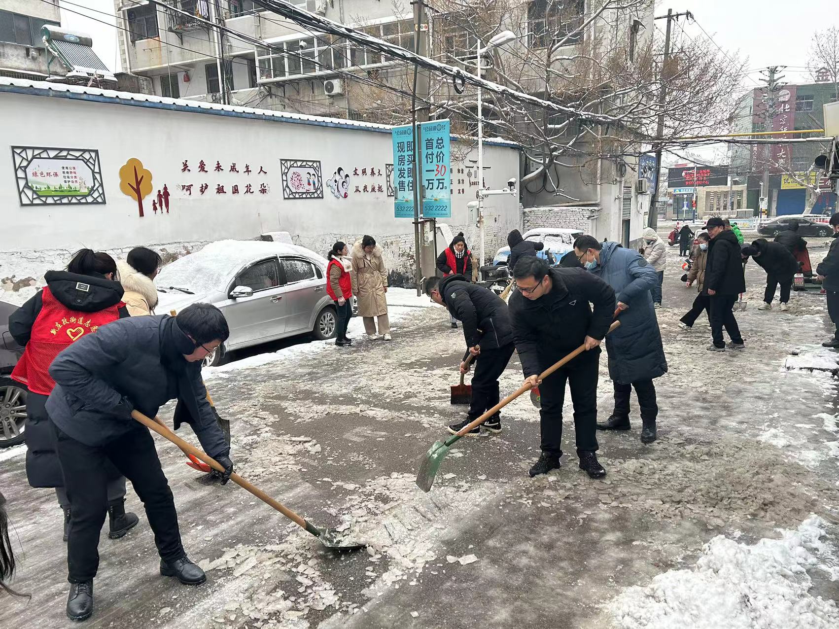 2月2日至2月4日,为做好低温冰冻等恶劣天气的应对工作,按照区委、区政府统一部署, 区住建局机关全体党员干部职工积极开展铲冰除雪工作,在降雪后及时清理打通单位进出道路,方便群众办事,清除公园巷道路积雪,保障辖区居民出行道路畅通。充分发挥了党员先锋模范带头作用。