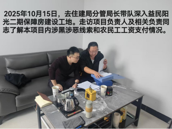 此次检查采取“现场查看与座谈交流” 相结合的方式,旨在深入一线掌握实情、压实责任。在各项目现场,检查组一行与项目建设单位、施工单位负责人及相关管理人员进行了深入交流。检查组详细询问并了解了各项目在建设过程中,是否存在涉黑涉恶违法犯罪线索。围绕根治欠薪目标,检查组细致排查了各项目的农民工工资支付保障情况。通过认真查阅工资支付台账、核对银行流水记录、现场询问农民工代表等方式,重点对工资专用账户、实名制管理、工资保证金等“三项制度”的落实情况进行了核查。检查组要求,项目各方必须严格落实工资支付主体责任,确保农民工工资按月足额发放到位,坚决杜绝拖欠、克扣现象,从源头上预防和化解劳资纠纷,切实保障劳动者的基本权益。