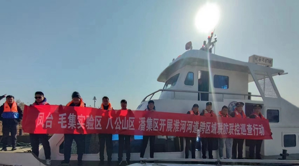 11月24日,八公山区、凤台县、毛集实验区、潘集区各河长办、水利部门赴淮河河道开展跨区域联防联控巡查行动。现场巡查河流交界区域堤防、河道管护及水环境等情况,对河道常态化“清四乱”、水面清漂工作提出了具体要求和意见。
