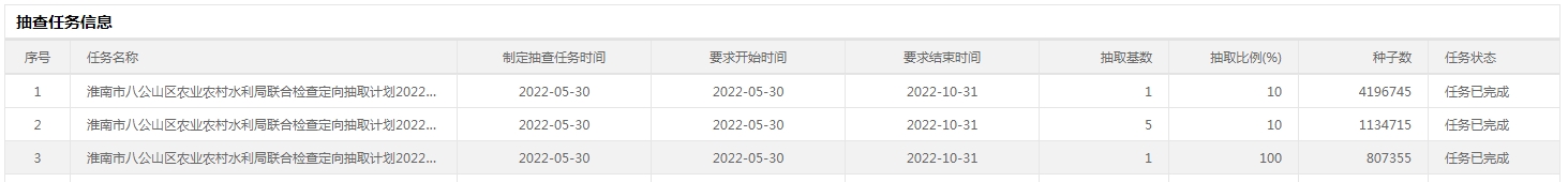 八公山区农业农村水利局与区市场监督管理局2022年开展“双随机、一公开”执法抽查结果