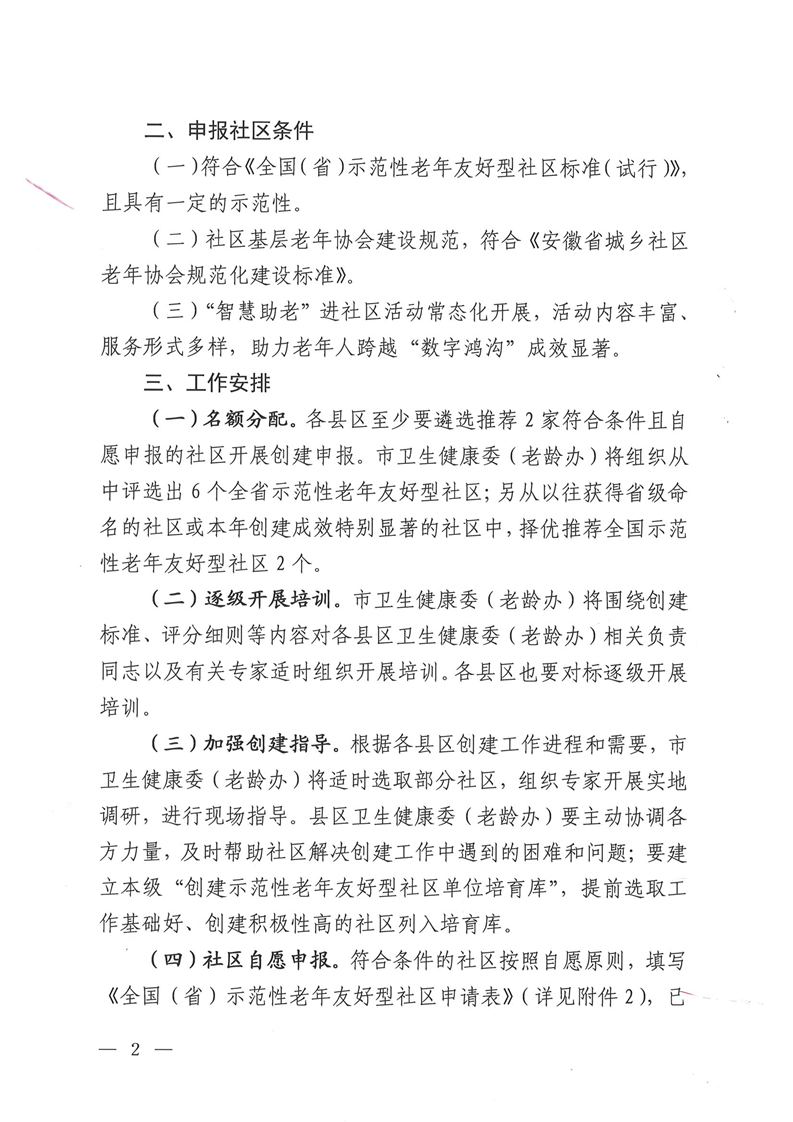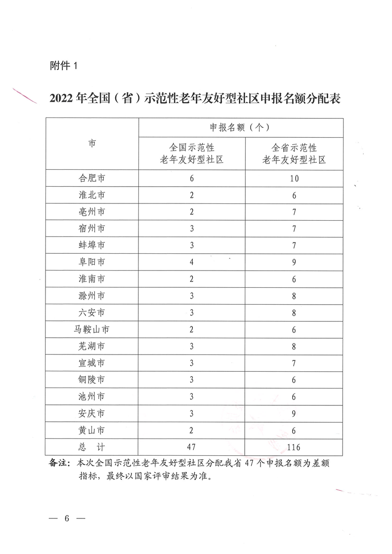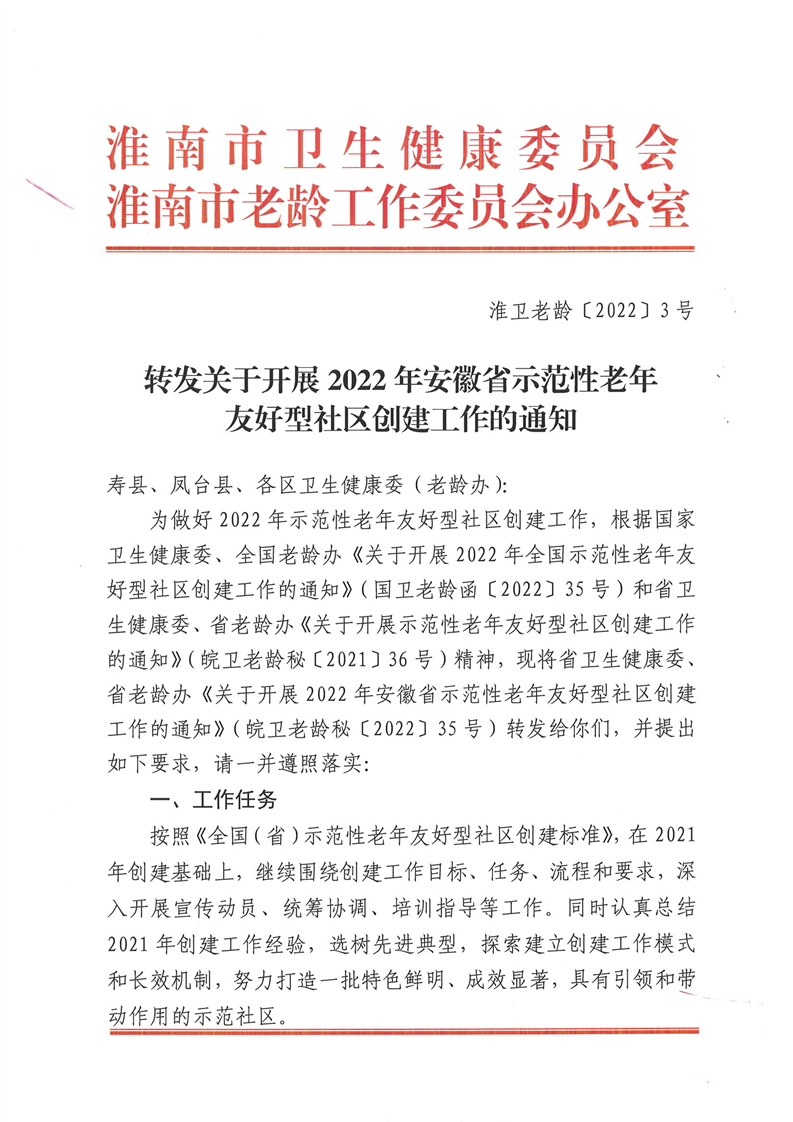 转发关于开展2022年安徽省示范性老年友好型社区创建工作的通知