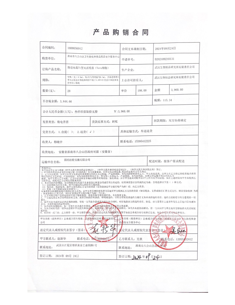 肠道病毒灭活疫苗购销合同