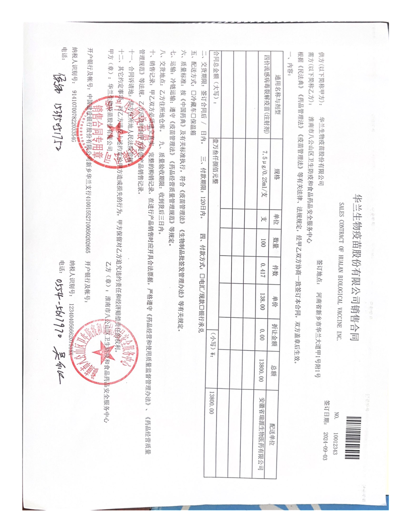 四价流感疫苗购销合同