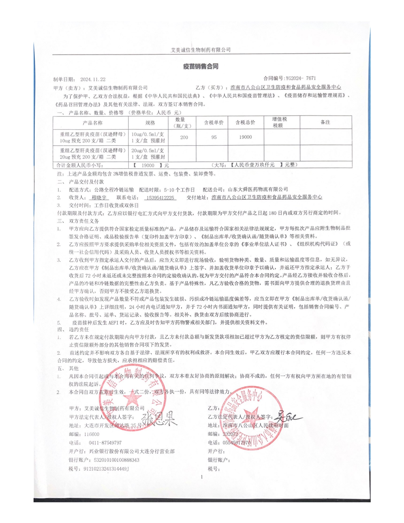 乙肝疫苗购销合同
