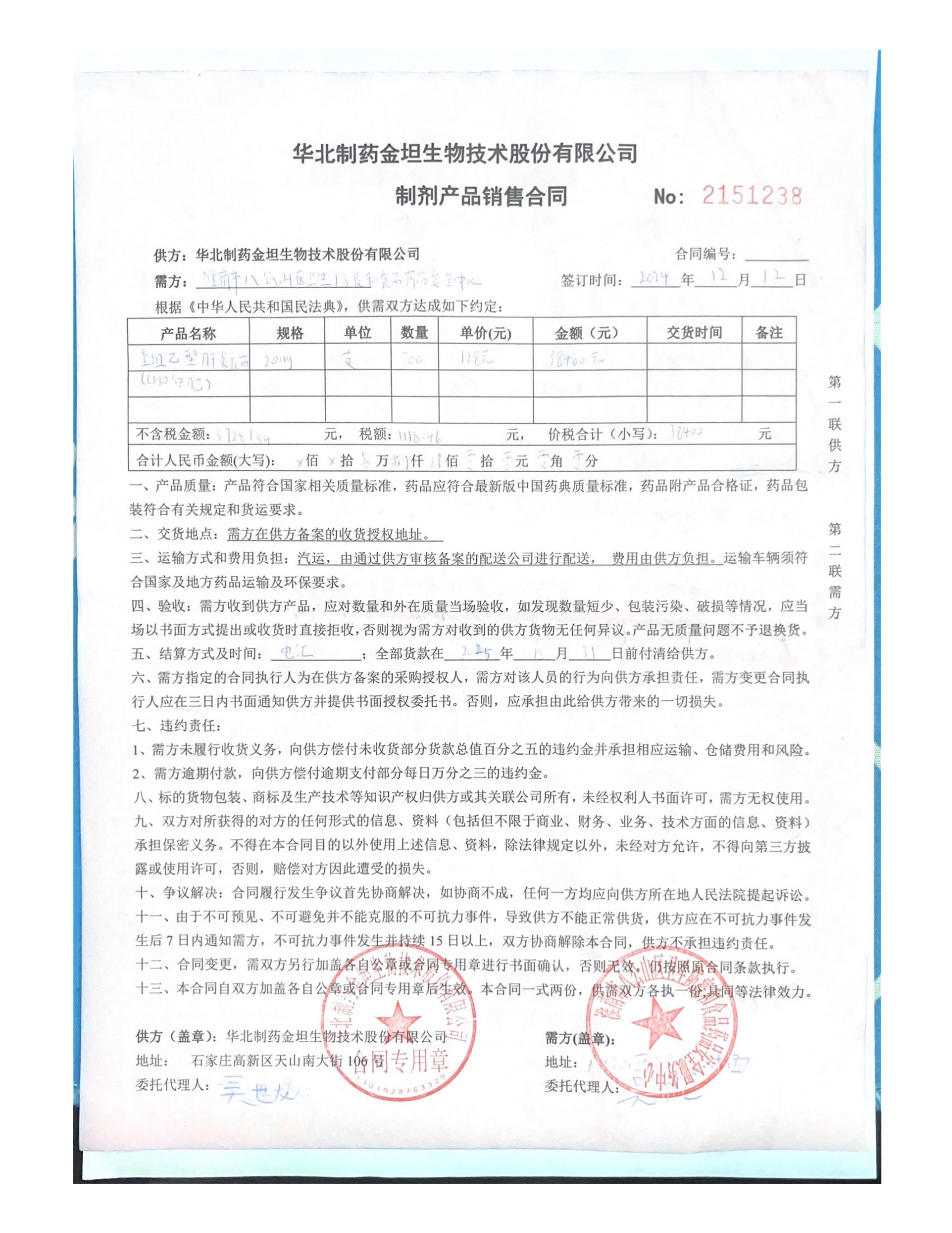 乙肝疫苗购销合同