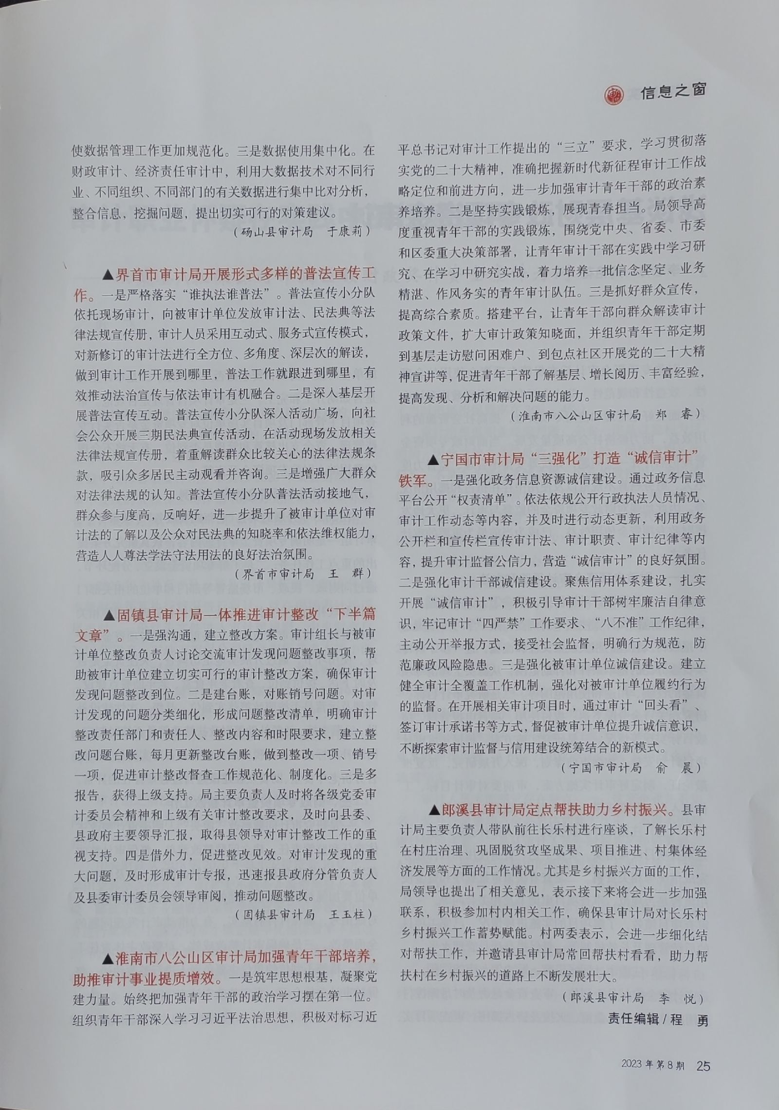【媒体解读】《安徽审计》杂志(2023年8月总第404期)推送:淮南市八公山区审计局加强青年干部培养,助推审计事业提质增效