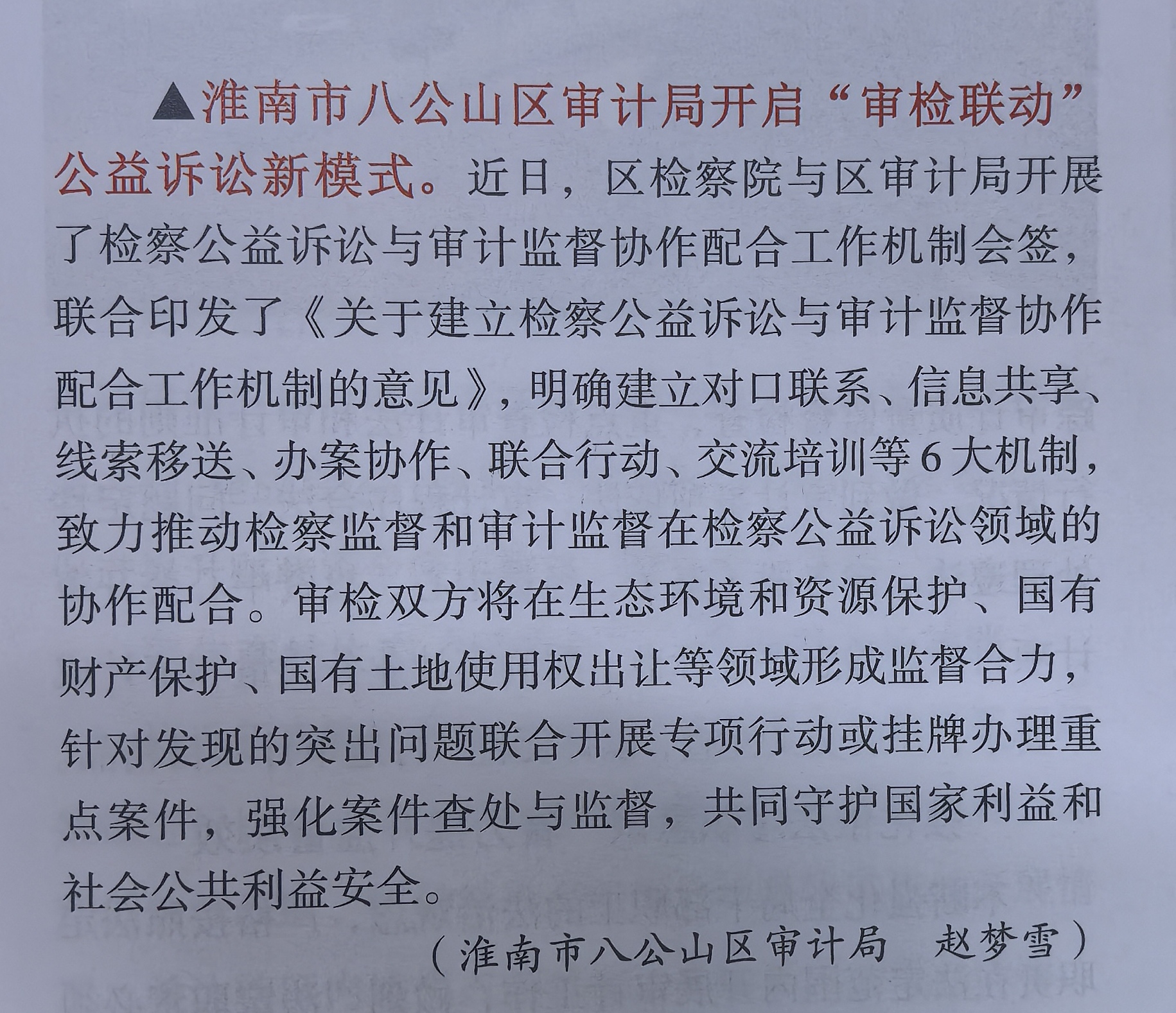 【媒体解读】《安徽审计》杂志(2025年3月总第423期)推送:淮南市八公山区审计局开启“审检联动”公益诉讼新模式
