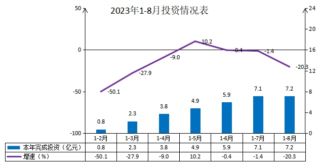 1-8月份,全区固定资产投资完7.19亿元,同比下降20.3%,低于全市水平28.2个百分点,增幅大小口径位次均居全市第8位,固定资产投资两年平均增速-4.6%。