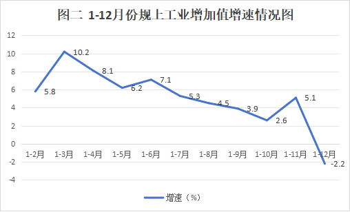 1-12月份,全区工业增加值同比增长0.2%。其中,规模以上增加值同比下降2.2%,增速较1-11月份回落7.3个百分点,低于全市平均水平3个百分点,大小口径均居六区两县第6位。