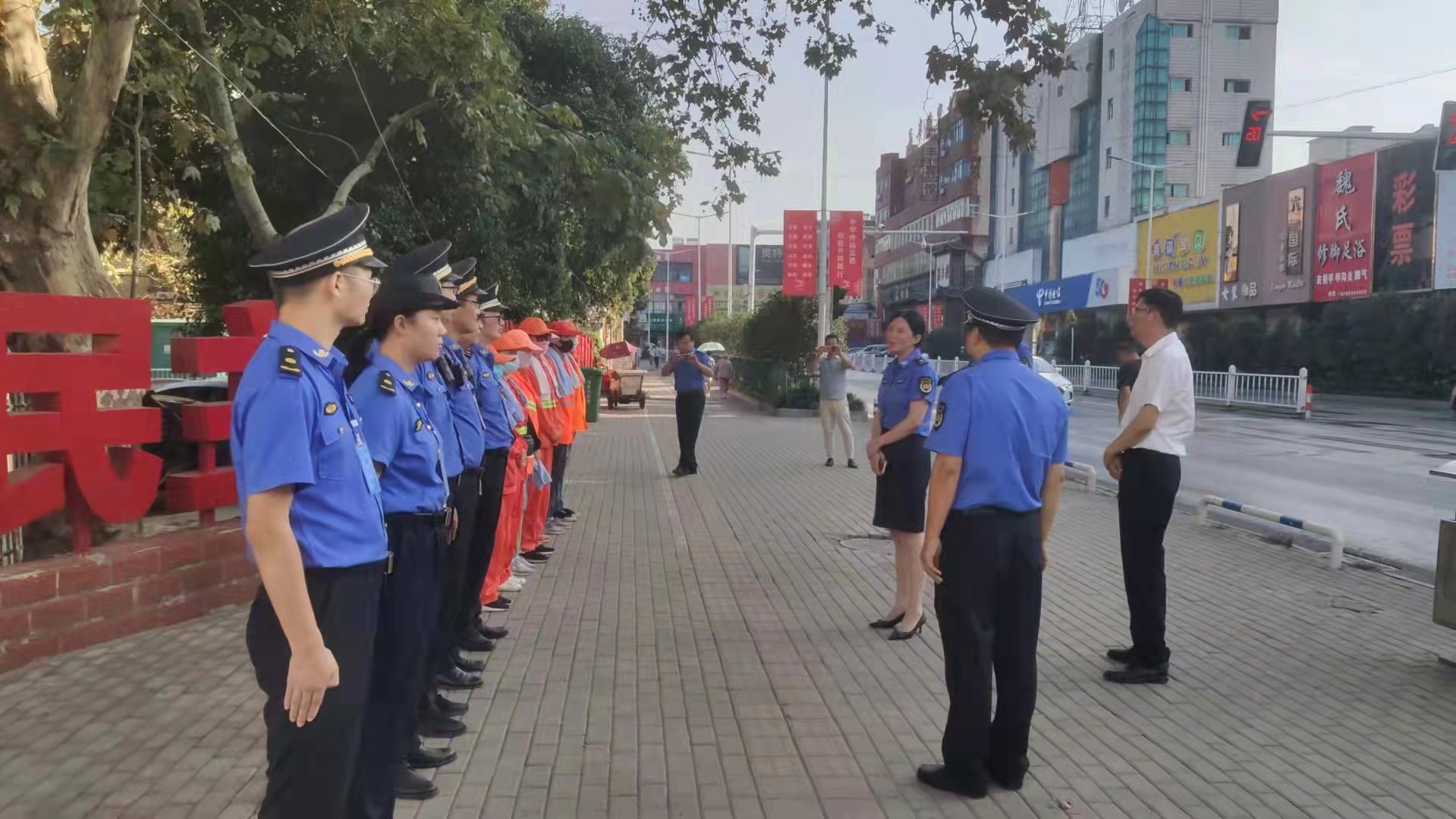 10月1日,八公山区城管局强化国庆期间市容保障工作,加强蔡新路、淮凤路等主次干道周边,风景区、商业街等重点区域市容秩序巡查整治力度,取缔出店占道经营,劝离拍摄违停车辆,规范沿路商户宣传经营行为,期间,市城管局党组书记、局长宫传敏率队看望慰问了一线城管执法人员和环卫工人,并就国庆期间各项工作进行了指导部署。