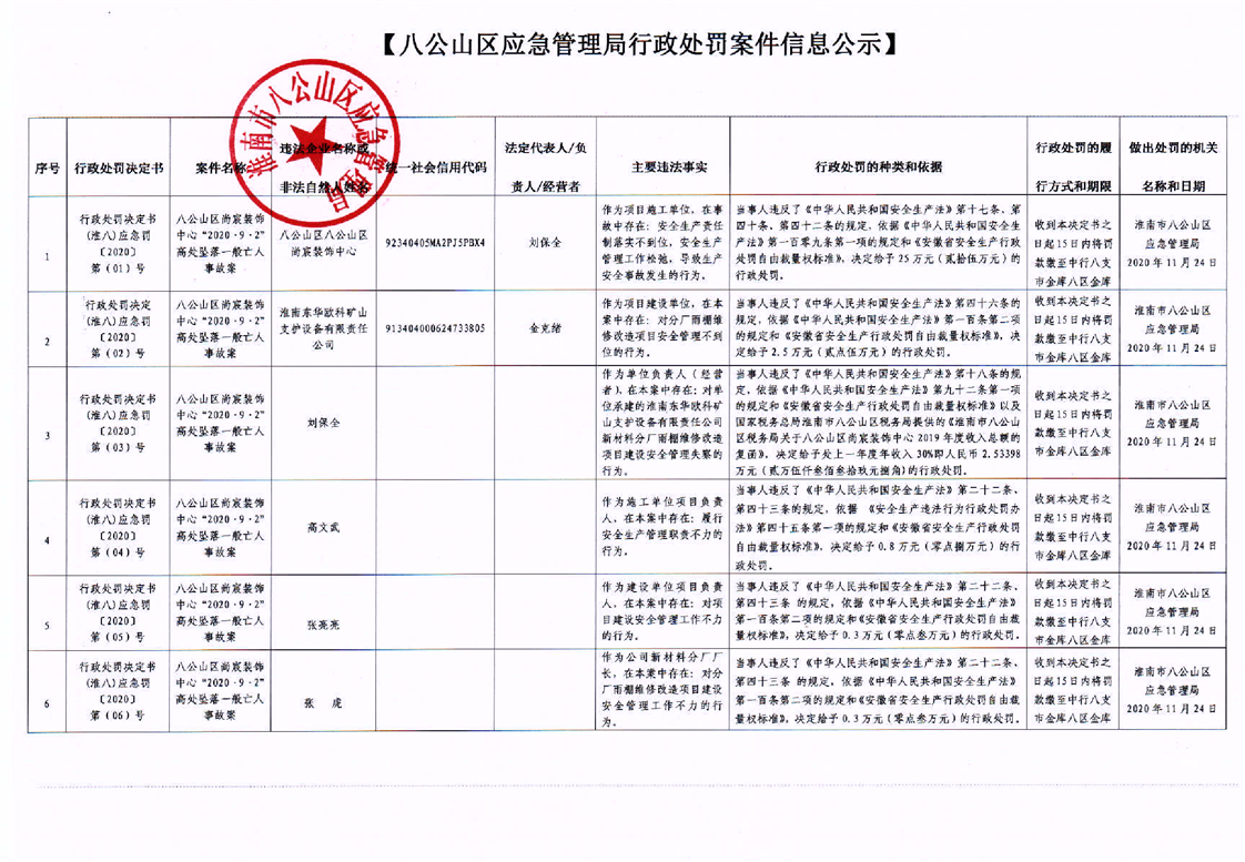 八公山区应急管理局行政处罚信息公示