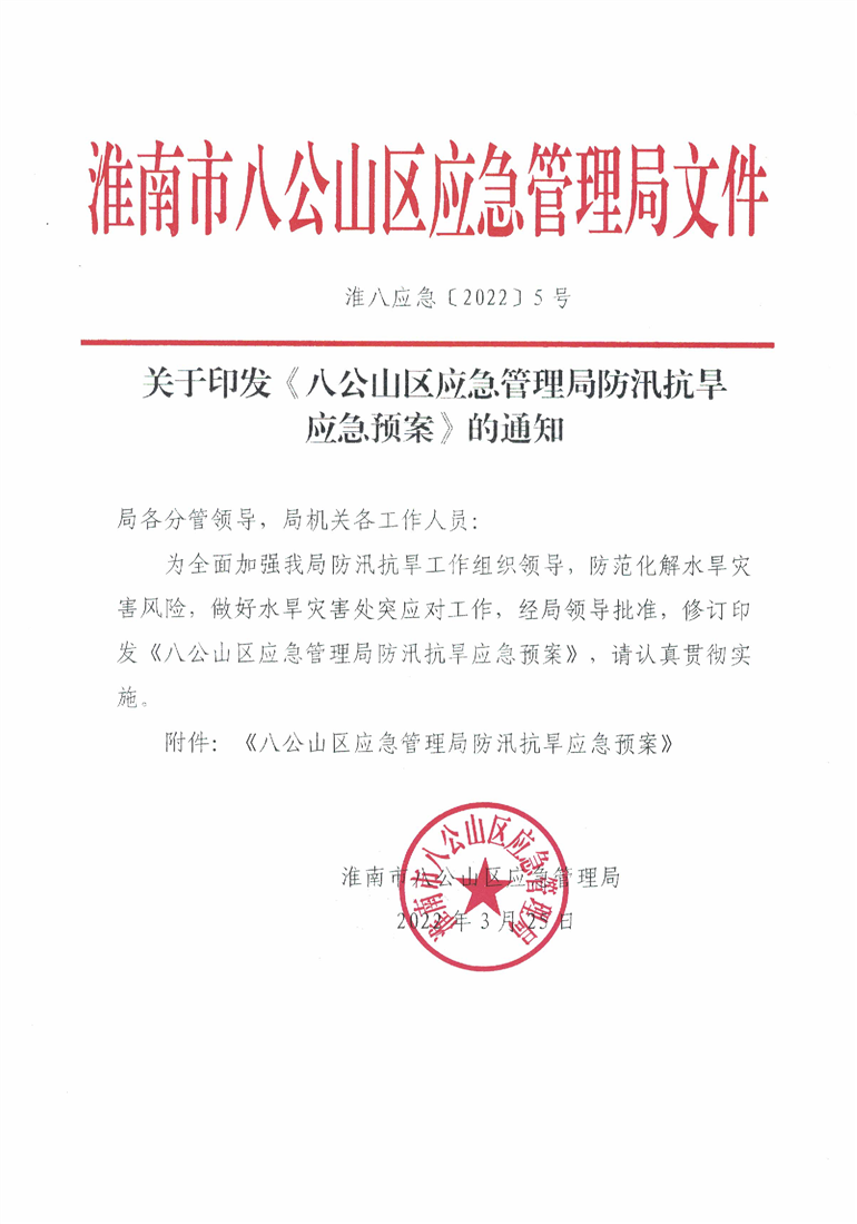 关于印发《八公山区应急管理局防汛抗旱应急预案》的通知
