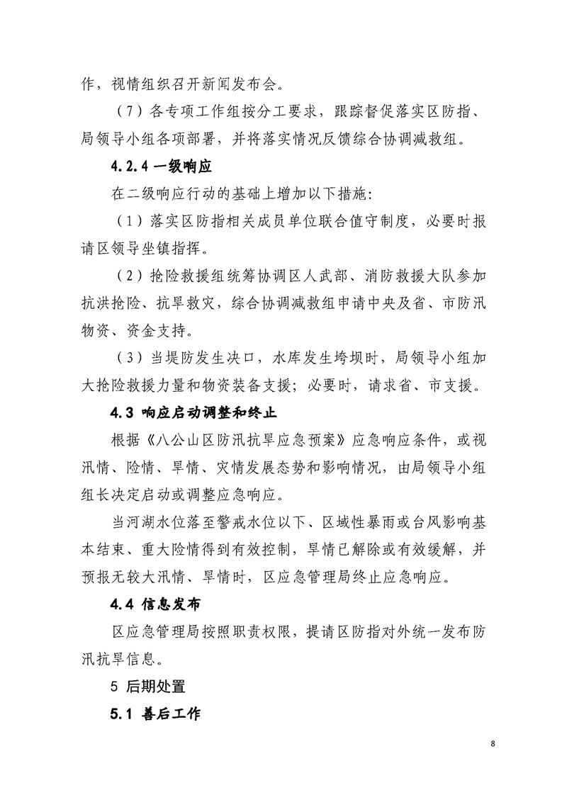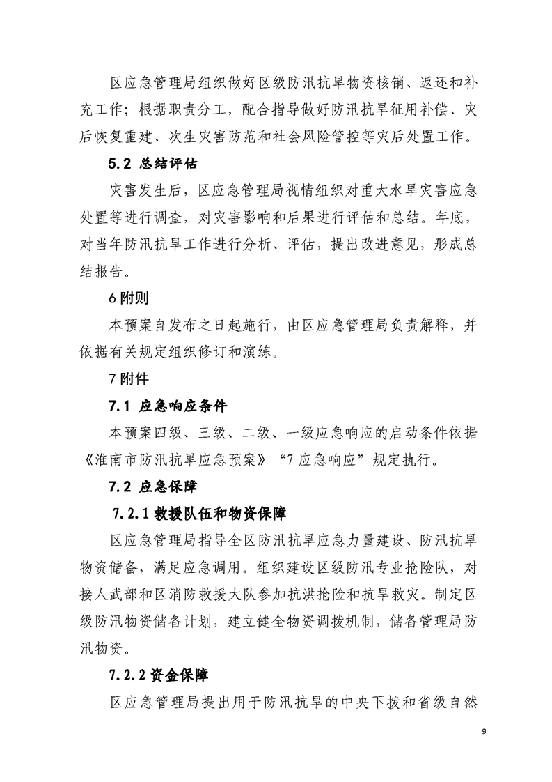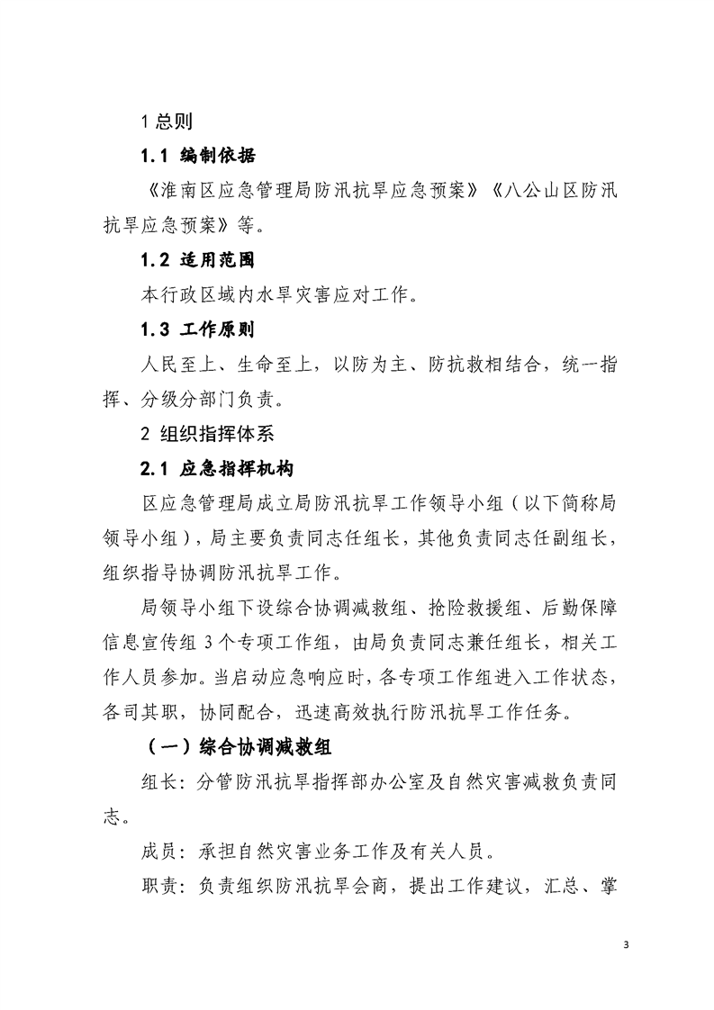【自然灾害类预案】关于印发《八公山区应急管理局防汛抗旱应急预案》的通知