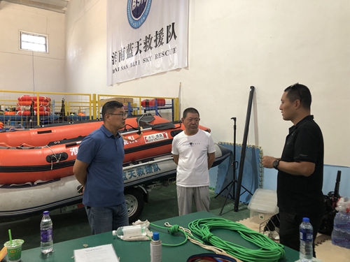 在考察中,淮南蓝天救援队负责人介绍了队伍组建运行等情况,双方就队伍组织管理、救援装备使用维护等具体业务工作进行了交流学习,并就继续共同开展应急救援和防灾减灾、防溺水宣传等公益活动,达成一致意见。