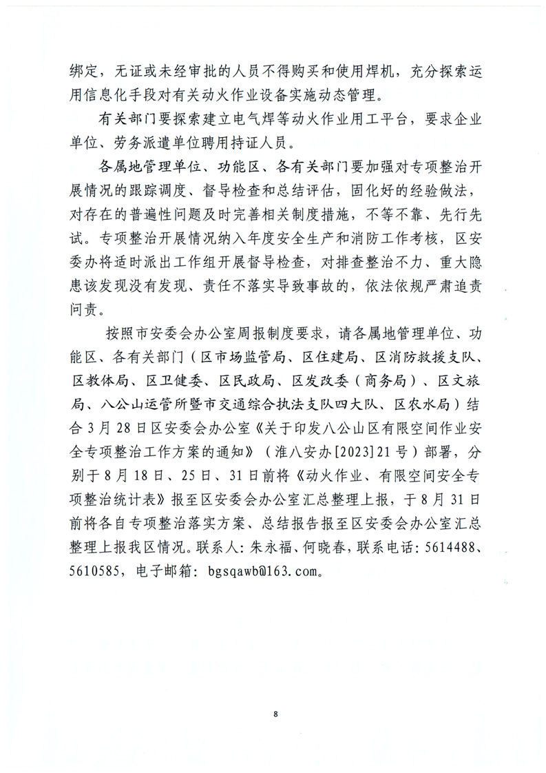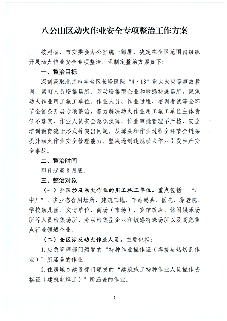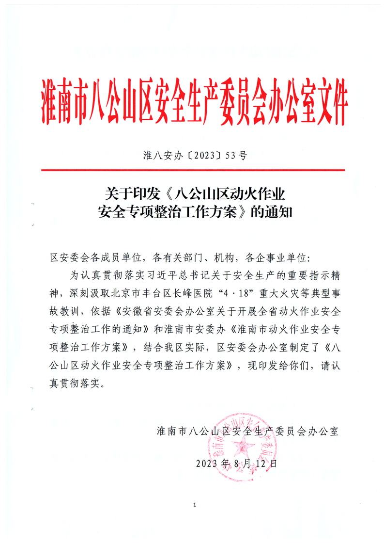 关于印发《八公山区动火作业安全专项整治工作方案》的通知