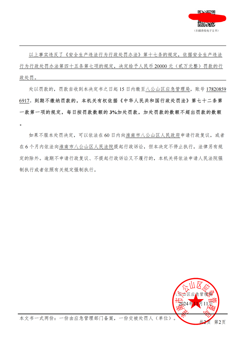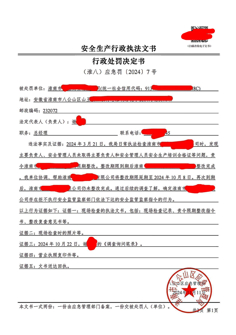 行政处罚决定书(个人)(淮八)应急罚〔2024〕7号