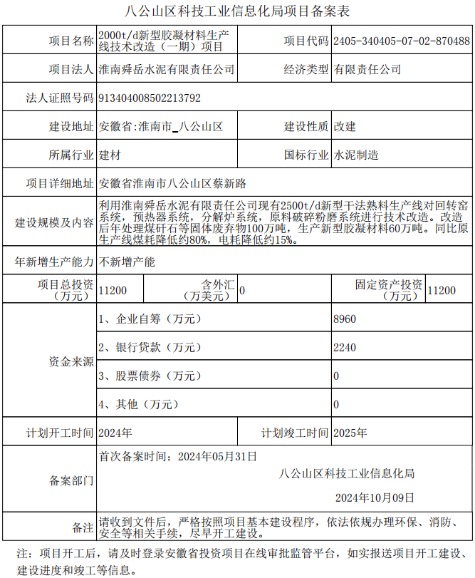 2000t/d新型胶凝材料生产线技术改造(一期)项目