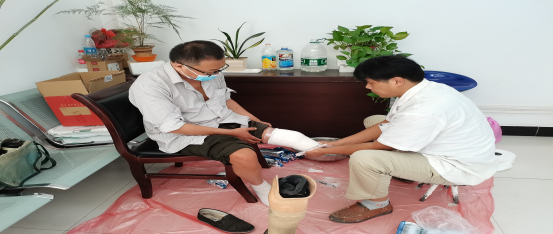 7月18日下午,市残联和区残联免费为9名适配辅助器具的残疾儿童;为12名适配矫形器的残疾儿童;为7名适配假肢的残疾人进行现场取型。