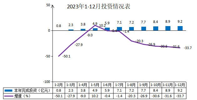 1-12月份,全区固定资产投资完成9.2亿元,同比下降33.7%,低于全市水平40.9个百分点,增幅大小口径位次均居全市第8位,固定资产投资两年平均增速-15.9%。