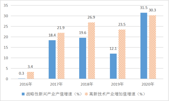 专栏四:“十三五”时期战略性新兴产业产值和高新技术产业增加值增速(%)