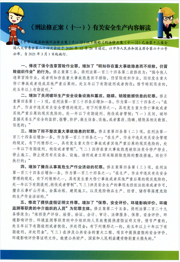 | 名称: | 【法规解读】《刑法修正案(十一)有关安全生产内容解读 | 点击量: | |