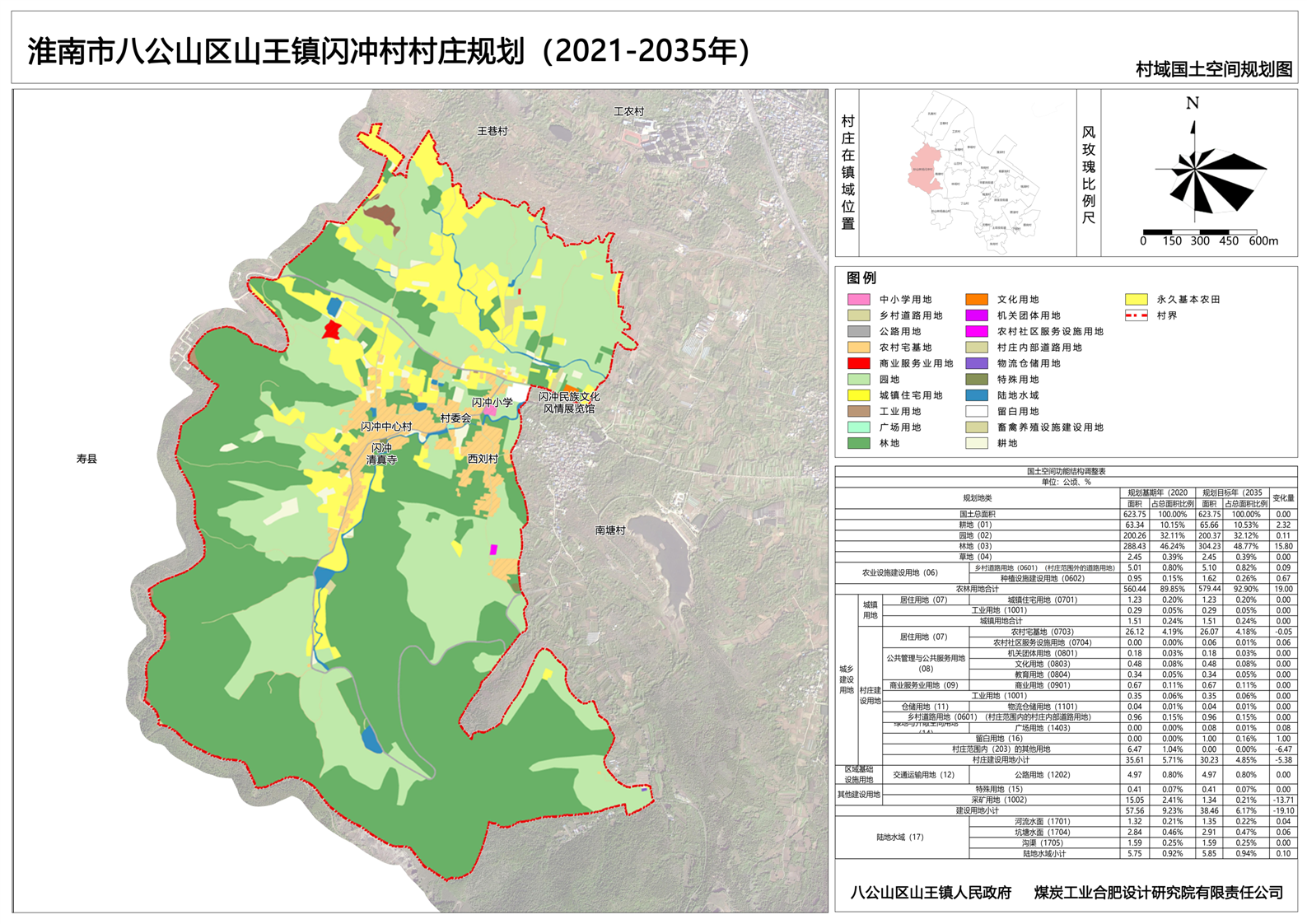 规划范围为八公山区山王镇闪冲村,规划总用地面积约为623.75公顷。