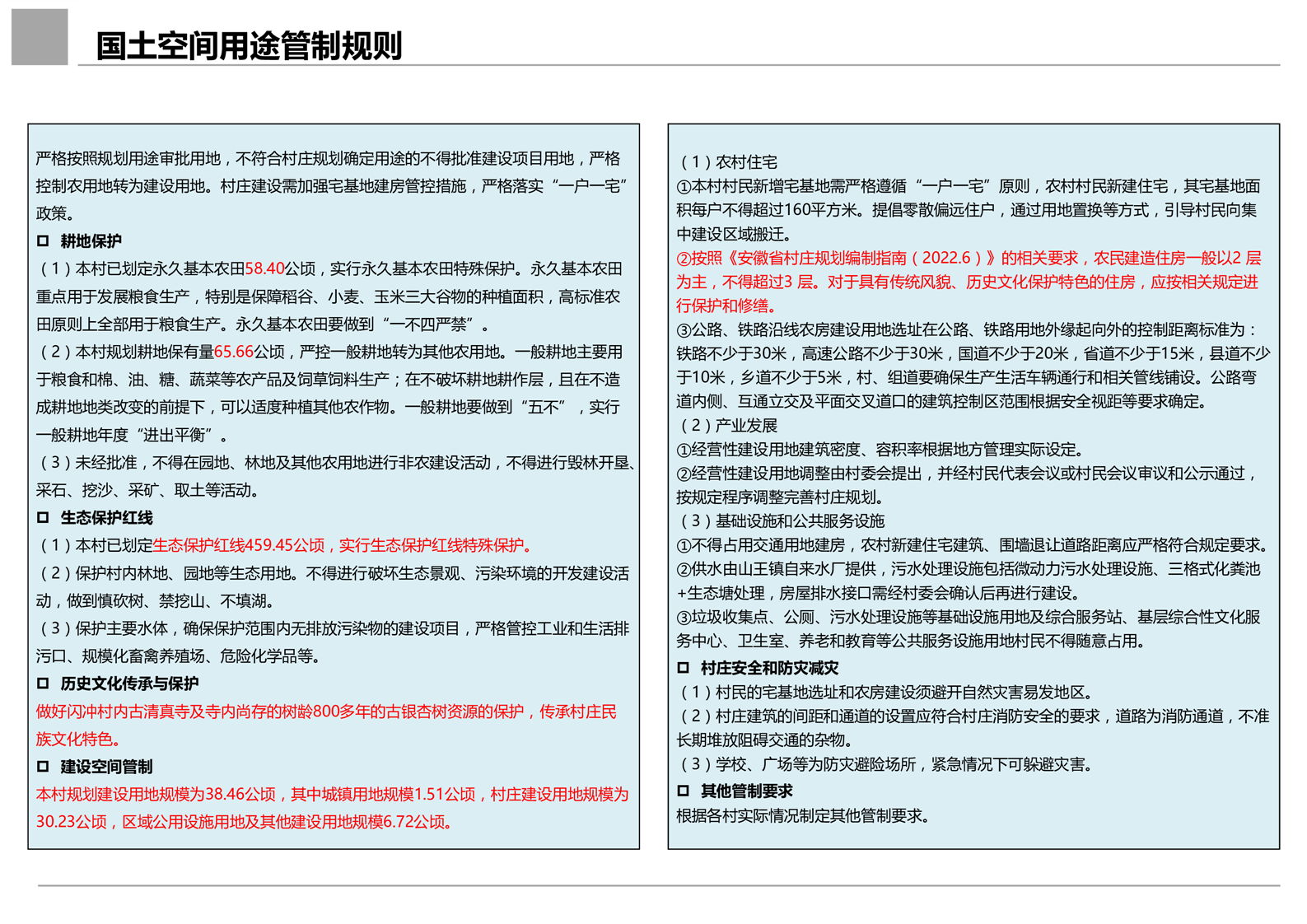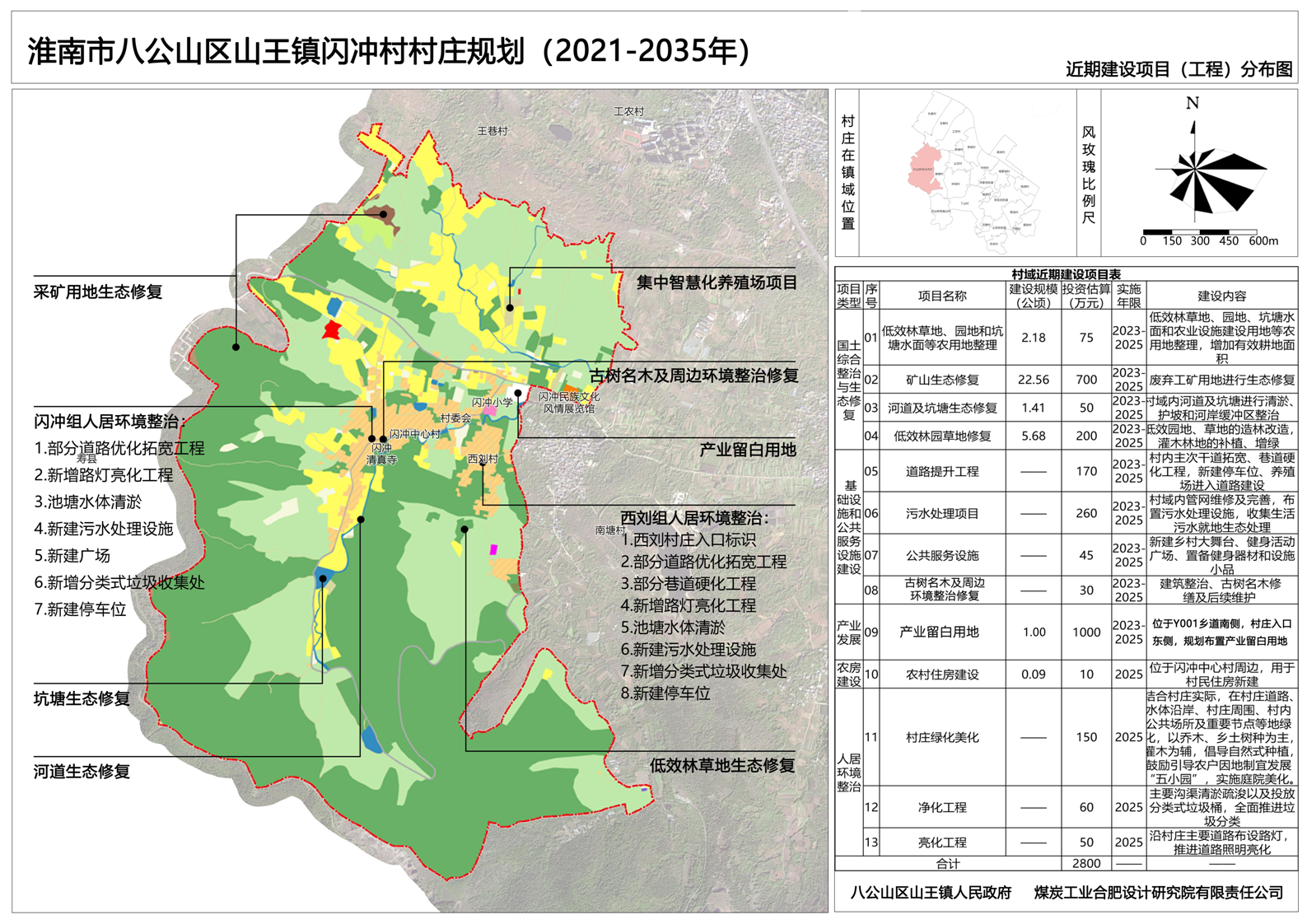 根据闪冲村实际现状,梳理土地资源、生态资源、产业资源,结合村庄实际发展需求,打造“民族底蕴·和美典范”的八公山区农旅示范村发展目标。规划通过乡村土地盘整,整体推进农用地整理、建设用地整理和乡村生态保护修复,实现建设用地减量,并为未来发展预留空间。同时明确村庄具体地块用途及重点地块建设强度,引导村庄分类整治,提升产业发展,改善人居环境。