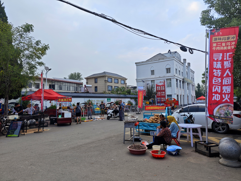 9月18日,闪冲牛肉汤美食节在山王镇闪冲村文化活动广场隆重拉开帷幕。活动现场,各色小吃摊位整齐排列,牛羊肉汤、手工月饼、绿豆圆子、大救驾、板栗、竹荪菌等各类美食琳琅满目,香气四溢,令人垂涎欲滴。这些美食不仅汇聚了闪冲村的特色风味,更融入了地方文化的独特元素,让游客在品尝美食的同时,也能感受到浓郁的地方文化氛围。
