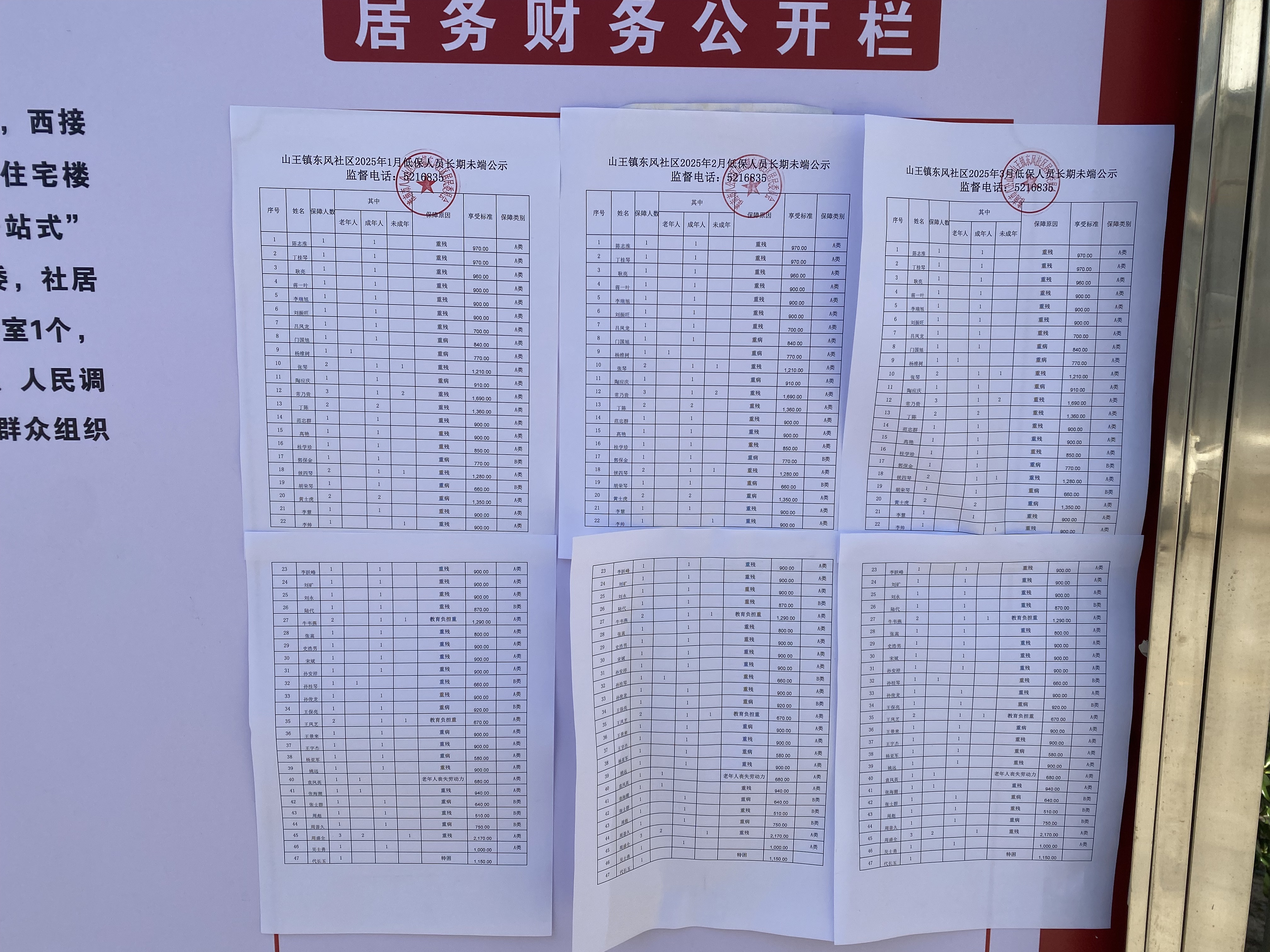 【基层政务公开提升行动落实情况】【公告栏】山王镇2025年第一季度村务公开栏检查情况