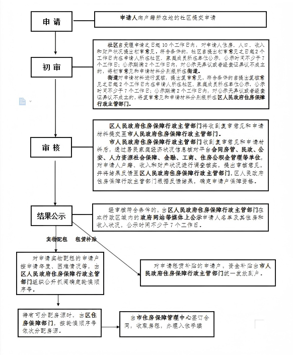 八公山区公共租赁住房及租赁住房补贴申请的审核、实物分配流程图
