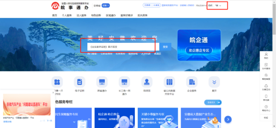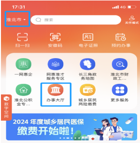 第一步:母亲登录皖事通,定位到本市,再点击“办事大厅”