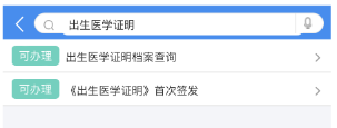 第三步:在搜索框里输入“《出生医学证明》首次签发”进行搜索